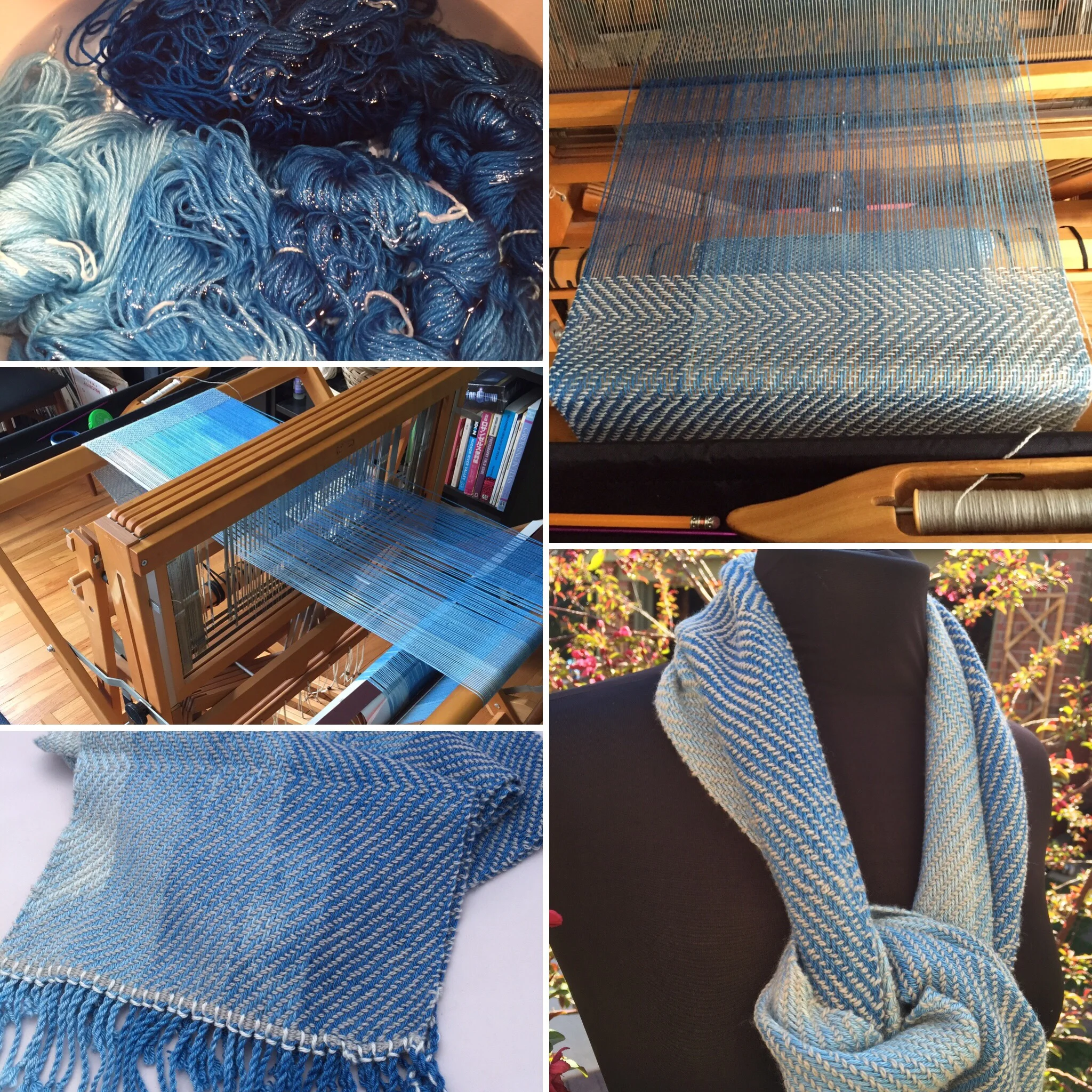 I started knitting right out of grad school and found my first floor loom pretty quickly after that. In the last few years I have taken up yarn and fiber dying and spinning: I love the control it gives me over the finished piece! Gradient warp? I can dye that! Textured yarn to mix in? I'll spin that right up.